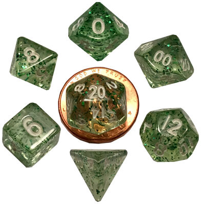 Perfect for gaming anywhere, anytime! At 10mm, these mini dice sets easily fit in your pocket so you can bring your dice everywhere you go. Each polyhedral set comes with 7 dice (d4, d6, d8, d10, d10 (00-90), d12, and d20).