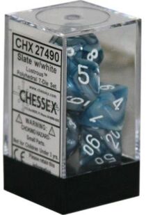 Dice - Lustrous Polyhedral Slate/White (7 Dice in Display)