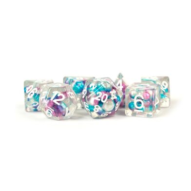 MDG - Pearl Resin Poly Set: Gradient Purple/Teal/White Set of 7 Dice