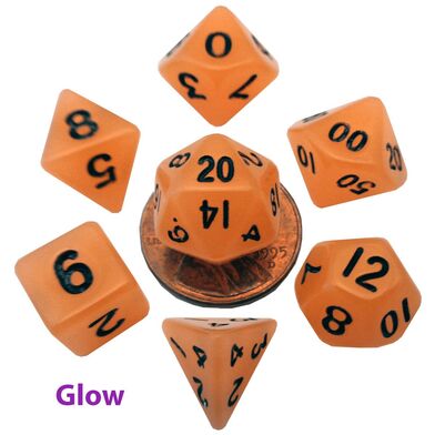 Dice - Mini Polyhedral Dice Set: Glow Orange with Black Numbers