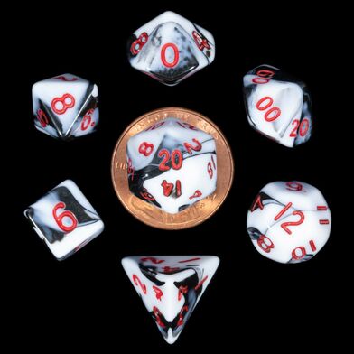 Dice - Mini Polyhedral Dice Set: Marble with Red Numbers