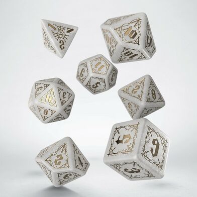 Shimmering white – the color of this dice set conjures tales of the pale moon, haunting eternal nights, and the ghostly purity of immortal creatures who crave the essence of life.