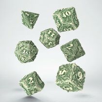 Born within the darkness of the barren tombs of vampire lords, Bloodsucker Dice Set: Immortal is an unequivocal image of their unnatural, blasphemous skills and an explicit manifestation of their vast, immeasurable power. The shimmering white hue, pale as the moon, is not only a symbol of their immortal purity but also a reminder of the eternal night they roam, thirsting for the vitality of the living. Every single one of these dark sentiments has been encapsulated in this staggering dice set.