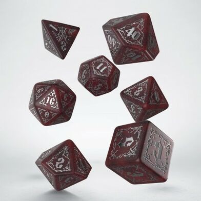 Deep crimson red – the color used for this dice set makes the stories about swarms of ruthless foes and bloody skirmishes, the center points of many vampire-themed adventures, immediately come to mind.