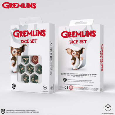 Look at this exquisite dice set inspired by the Gremlins franchise. Here’s 7 highly detailed polyhedral dice: D4, D6, D8, D10, D12, D20 and D100.