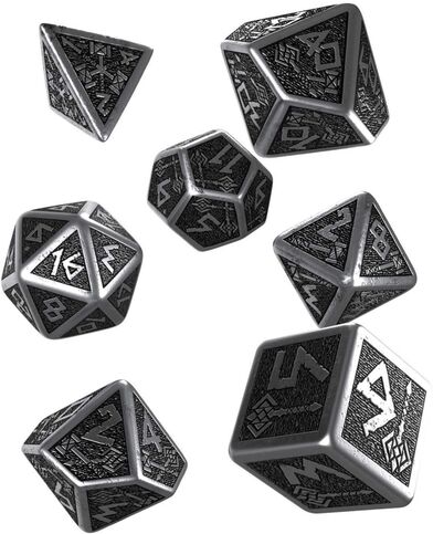 After a year in quest for missing forge of the Smashhammer blacksmith, elven emissiaries of Q-workshop have found huge brassware gates. These huge doors were hiding dwarven engraved dice made from metal. Thanks to the elven bravery and effective quest for the blacksmith’s forge, today we can offer you this gorgeous dwarven metal dice set of 7 RPG dice