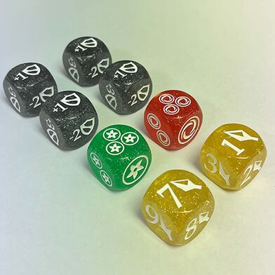 4 Black Armor Counter Dice – Clearly marked with +1 to +3 and -1 to -3 for accurate defense adjustments.