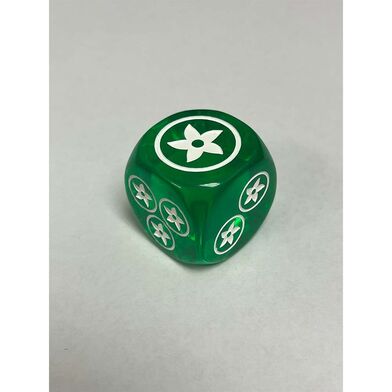 Track your game state in style with the 25mm Green Glitter Tunic Counter Die. Numbers 1 to 3 are marked with flower icons which serve as resource symbols. The remaining sides display the key Flesh and Blood keywords “Dominate,” “Overpower,” and “Go Again” — perfect for quickly marking game effects during combat. Whether you’re managing your Tunic resources or highlighting an action, this die is a practical and visually striking addition to your tabletop arsenal.