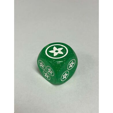 Track your game state in style with the 25mm Green Glitter Tunic Counter Die. Numbers 1 to 3 are marked with flower icons which serve as resource symbols. The remaining sides display the key Flesh and Blood keywords “Dominate,” “Overpower,” and “Go Again” — perfect for quickly marking game effects during combat. Whether you’re managing your Tunic resources or highlighting an action, this die is a practical and visually striking addition to your tabletop arsenal.