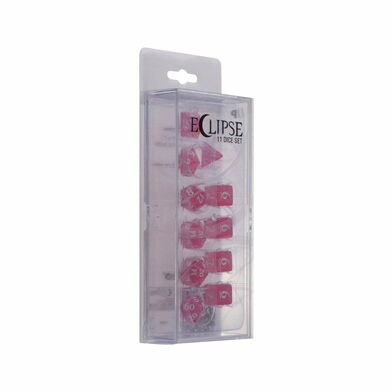 The Eclipse 11 Dice Set is a gamer’s best friend! While most RPG dice sets include only the polyhedral 7, Ultra PRO is here to help you UP your game with additional dice needed for modern RPG games. Each set includes D4, 4x D6, D8, 2x D10, D12, and 2x D20. The dice come in a 2-piece acrylic storage box with enough space for up to 40 dice and are sized to fit pens, markers, or other small RPG accessories. Eclipse Dice feature a shimmering finish that makes every roll magical! Aligned with the 12 Eclipse colors, these dice are the perfect companion for the 100+ Deck Boxes, Matte or Gloss sleeves, and PRO-Binders.