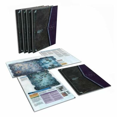 Inspired by the critically acclaimed play surface books from Gloomhaven: Jaws of the Lion, this set of [x4] Scenario Play Surface Books allows you to ditch your Frosthaven map tiles and overlay tokens aside, in favour of quicker and easier setup time just by turning the pages!