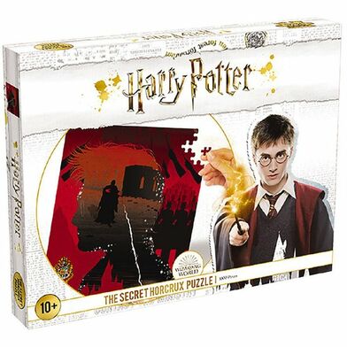 There will come a time when Harry Potter must be told something." Relive the moment that the Boy who Lived realises that his own survival is entwined with that of the dark wizard Lord Voldemort in this stunning, officially-licensed 1000-piece Secret Horcrux puzzle. One of the most poignant and meaningful scenes from J. K. Rowling's beloved saga is yours to recreate in a striking product that would be perfect for framing upon completion. This gloomy, intricate montage from the Battle of Hogwarts is coloured in shades of Gryffindor red, and bears the images of Harry, Voldemort, Hogwarts and the Hogwarts crest in a brand new illustration which is sure to thrill fans of this timeless story. Voldemort's cruel regime is juxtaposed against Harry's inner turmoil as he contemplates his destiny and his loved ones. You won't need any wands, spells or potions to complete this puzzle if you remember Lupin's advice: "It is the quality of one's convictions that determines success!
