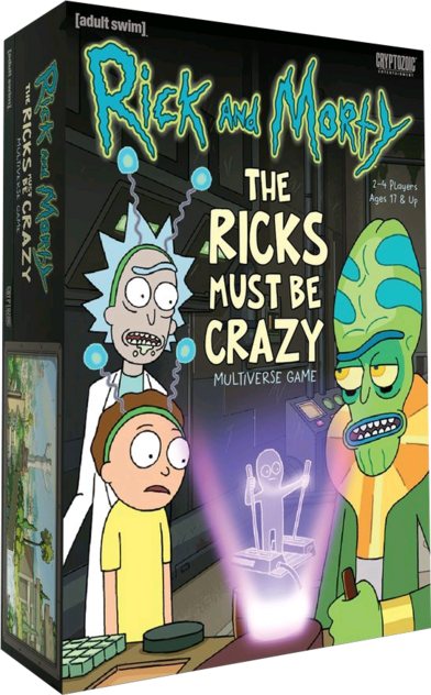 The Ricks Must Be Crazy Multiverse Card Game is an engine-building game (of sorts) that takes place in the four locations (which we like to call "Verses") from the popular episode "The Ricks Must Be Crazy": the Rickverse, Microverse, Miniverse, and Teenyverse.