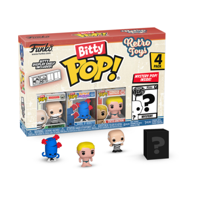 This 4-pack includes Bitty Pop! Mr. Monopoly, Bitty Pop! Barrel of Monkeys, Bitty Pop! Stretch Armstrong and a mystery Bitty Pop! figure.