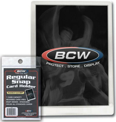 The BCW Regular Snap Card Holder (also known as a snap titer) is made of high impact, crystal clear polystyrene and features a precision fit, two- piece snap design. Use this product to protect, store and display collectible trading cards like baseball cards, football cards, basketball cards, gaming cards, and others.