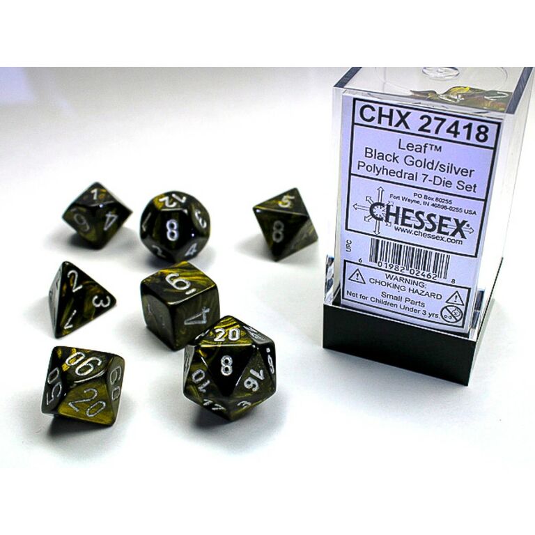 Dice - Leaf Black Gold with silver Classic Polyhedral Signature Series Dice