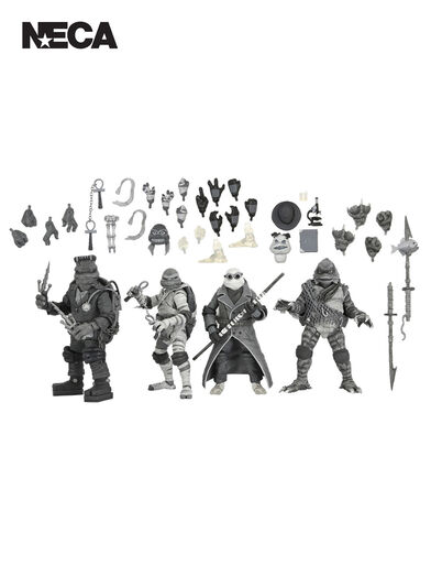 NECA is thrilled and chilled to introduce the next release in our Universal Monsters x Teenage Mutant Ninja Turtles action figure line! Paying tribute to the world’s most famous turtles and Universal’s icons of horror, this epic 4-pack reimagines the Heroes in a Half Shell as classic monsters in spine-tingling black-and-white deco.