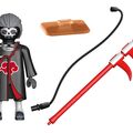 Hidan is a member of Akatsuki and a fanatical follower of Jashinism. Thanks to his religion, he is immortal and able to curse his opponents with a ritual. While performing his ritual, his skin turns black and shows white lines reminiscent of a skeleton. Hidan has no respect for anything or anyone. The PLAYMOBIL playset includes Hidan wearing a black Akatsuki cloak with a fearsome black and white face and a three-bladed scythe.
