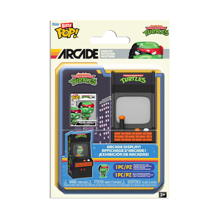 Remove Bitty POP! Michelangelo from his case so he can take his place in the Bitty POP! Arcade Display! The Bitty POP! case can be stored inside the Bitty POP! Arcade Display, directly below POP! Michelangelo.