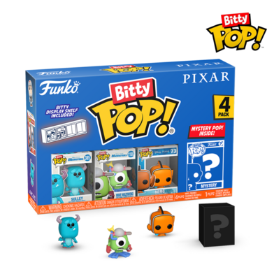 This 4-pack includes Bitty Pop! Sulley, Bitty Pop! Boo, Bitty Pop! Mike Wazowski, and a mystery Bitty Pop! figure.