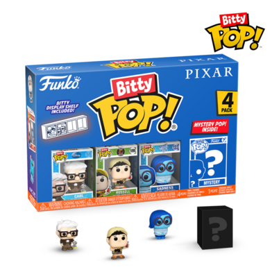 This 4-pack includes Bitty Pop! Carl, Bitty Pop! Russell (Dug Days), Bitty Pop! Dug, and a mystery Bitty Pop! figure.