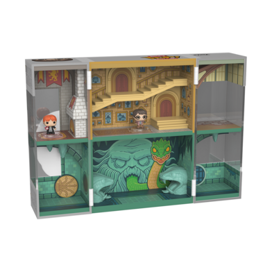 This hard acrylic display case is modeled to resemble a POP! box and opens to reveal iconic rooms from around the Hogwarts castle. This collectible also includes Bitty POP! Harry Potter with Chocolate Frog and Bitty POP! Ron Weasley with Howler!