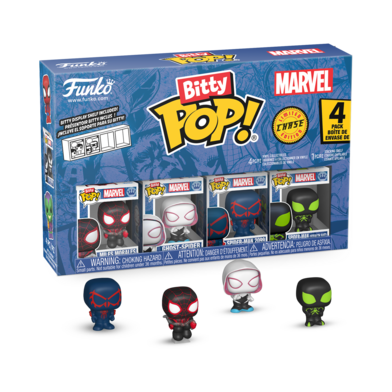 Expand your Marvel collection with this 4-pack featuring Bitty POP! Miles Morales, Bitty POP! Ghost-Spider, Bitty POP! Spider-Man 2099, and a chase Bitty POP! collectible.