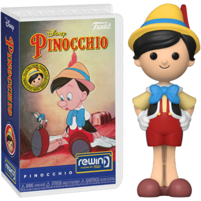 Break free of your strings with REWIND Pinocchio! Help this wooden puppet complete his mission to become a real boy when you welcome him into your Pinocchio collection. REWIND collectible comes in VHS-inspired packaging with a matching character card!