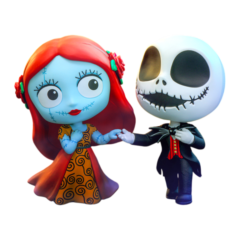 This set measures approximately 11 cm and features a themed base. Jack Skellington and Sally (Dancing) set beautifully captures the iconic scene of the beloved couple sharing a tender moment under the moonlight, with Jack inviting Sally to join him in a romantic dance.
