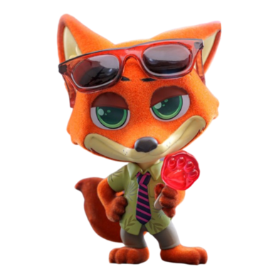 Nick Wilde Cosbaby (S) is here to wrap your winter in their "cute, fuzzy-wuzzy" velvet hair texture. With a pair of sunglasses on top of his head, Nick looks extra laid-back wearing his Hawaiian shirt. He is trying to sell you the Pawpsicle he made with Jumbo-pop. Collectible measures approximately 13 cm tall.