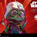 The Darth Vader (Iridescent Version) Cosbaby (S) Bobble-Head features the intimidating Darth Vader wielding his red lightsaber. He stands out from the galaxy with the iridescent finish, drawing power of the dark side.