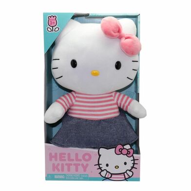 This super soft plush features Hello Kitty in her denim blue jumpsuit. Finished with embroidery and resin eyes, she's the perfect plush for any Hello Kitty fan. Whether you keep her on the couch, on a shelf, or tucked into bed, Hello Kitty's a friend to all.