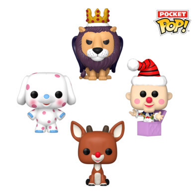 This 4-pack features Pocket Pop! Rudolph, Pocket Pop! Misfit Elephant, Pocket Pop! Charlie in the Box, and Pocket Pop! King Moonracer.