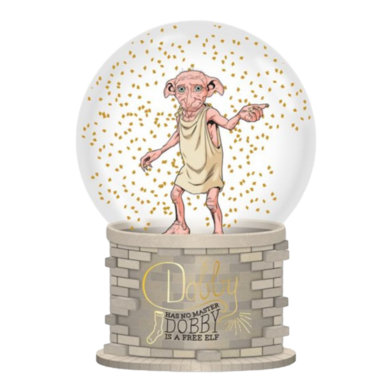 Show your love for everyone's favourite House Elf, Dobby with this magical Harry Potter Snowglobe. Inside the glass globe you'll find a polyresin sculpt of Dobby, whilst the base of the globe features a sculpted brick wall with Dobby's name and the famous sock that freed him.
