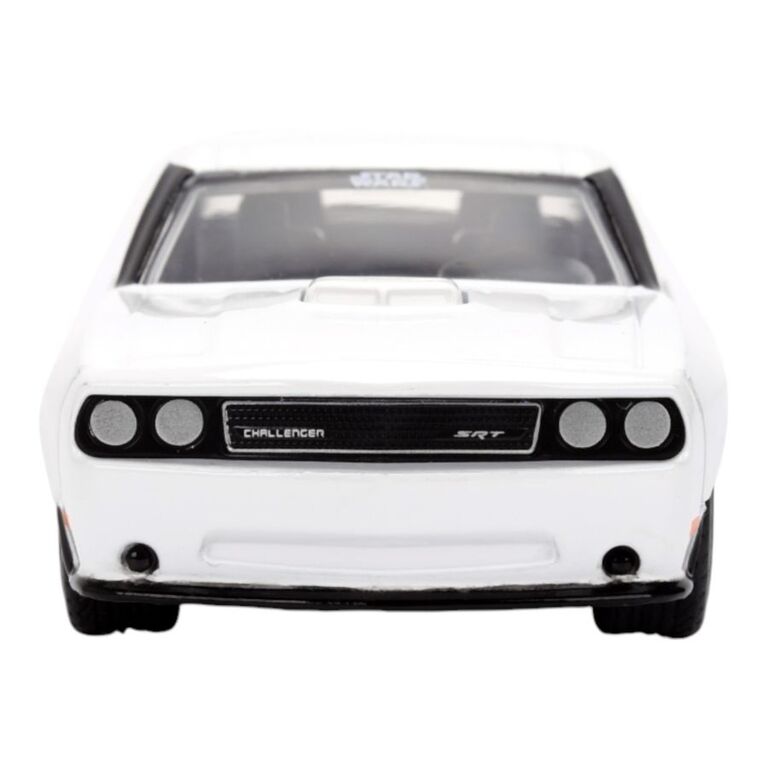 Iconic Star Wars Design – Features the legendary Stormtrooper artwork on a white 2014 Dodge Challenger SRT8, perfect for Star Wars fans and collectors alike.