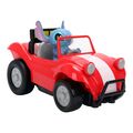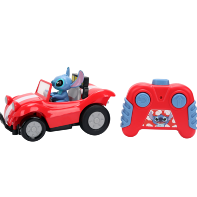 Zoom into island-style fun with the Jada Toys 1:32 RC Disney Stitch Buggy! This compact remote control car brings the chaotic cuteness of Stitch into your home with a built in figure and bright red beach buggy design perfect for fans young and old.