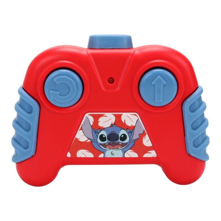 The simple two button remote gives kids full control of forward motion and spin turn steering, making it a great first RC for little drivers. At 5.5 inches long, it's sized just right for playrooms, desks, or dorm shelves. The molded Stitch figure is non removable and firmly seated in the driver's seat for secure, all in one fun.