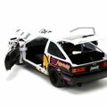 This mischievous little rascal is up to no good in her 1:24 Scale Hollywood Rides 1986 Toyota Trueno (AE86) Die-Cast Vehicle. A retro-style Toyota with colorful, trendy decos taken from your favorite anime series Aggrtusko. The perfect vehicle for the most iconic red panda.