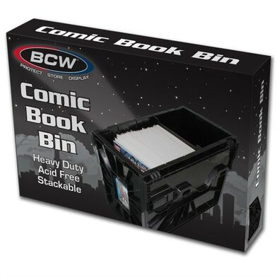 The BCW Short Comic Bin is a heavy duty comic box made from acid-free, reinforced, snap-together panels. The Comic Bin holds about 150 bagged and boarded comics and includes a movable partition that helps stand up your growing stack of comic books. Identification slots on the ends help you mark your boxes with either an index card or a toploading card holder. The lid panels feature sliding locks for added security.