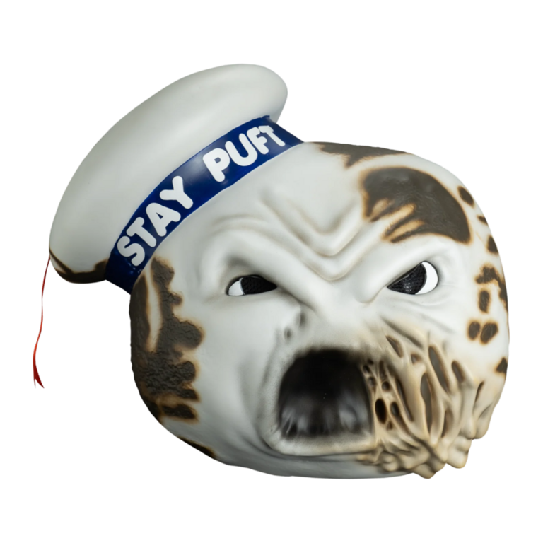 Trick or Treat Studios is proud to present the Toasted Stay Puft Marshmallow Man Mask. This full over the head mask captures the terrifying yet joyful look of this iconic character and is perfect for display or as the start of a prize-winning costume! Made of high quality vinyl with real ribbon detail.