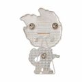 This Pop! Pin features glow-in-the-dark details, 3D molded metal, glitter enamel fill, silver-colored hardware, and built-in stand.