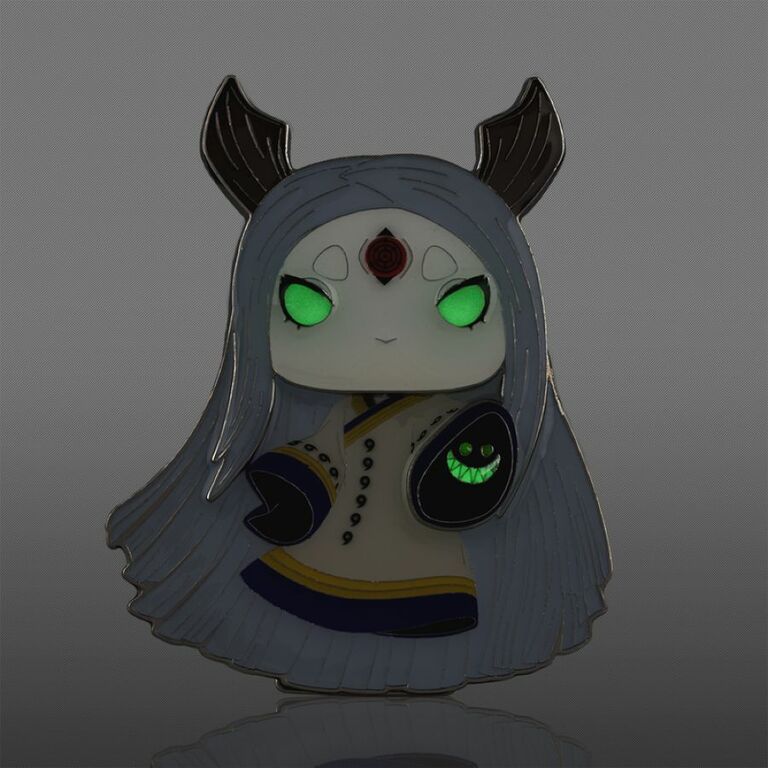 There’s a 1 in 12 chance you may find the glow-in-the-dark chase variant of Pop! Pin Kaguya Otsutsuki with faux leather dress and red glitter enamel fill. Pop! Pin features glow-in-the-dark details, silver-colored hardware and a built-in stand.