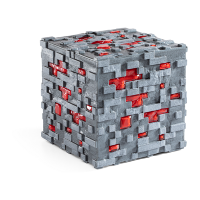 This illuminating redstone ore replica is full of detailed textures inspired by rock and crystal. The redstone textures in this ore glow with the light of the LED, which has three different modes—a gentle, flickering pulse, steady illumination, and off, ready to come back on at your touch.