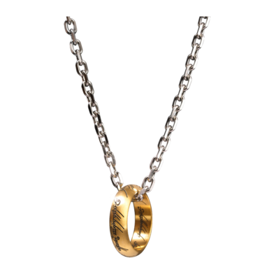 An anodised stainless steel One Ring on a chain, perfect for hiding under clothes to keep away from the prying Eye of Sauron. Each ring features a laser etched inscription of the One Ring verse.