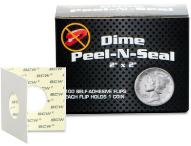 BCW Peel n Seal Paper Flips Adhesive Dime (2" x 2") (100 Flips Per Box)